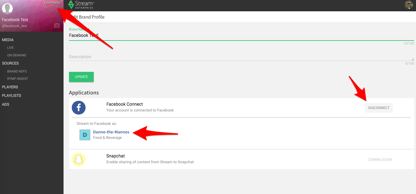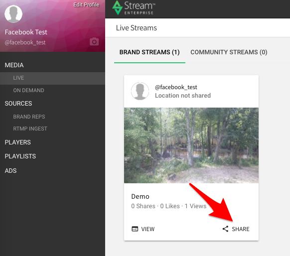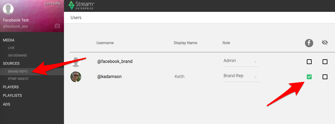 Individual Brand Reps or Admins can be set to Stream automatically to Facebook when they go live.